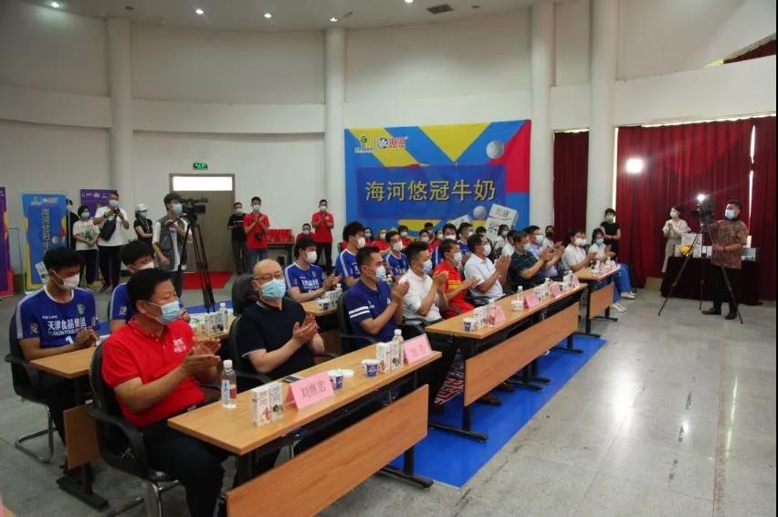 為助力優(yōu)化品牌活力,升級明星產品,近日,由天津食品集團、市排球運動管理中心、市排球運動協(xié)會及海河乳業(yè)公司共同舉辦的“天食男排星助力 海河新品添活力”產品戰(zhàn)略發(fā)布儀式盛大啟幕。市排球運動管理中心副主任韓友江,食品集團副總經理郟雷出席,集團相關部室主要負責同志,海河乳業(yè)公司領導班子成員、天津食品集團男排運動員及各方媒體近百人,共同見證海河悠冠系列牛奶上市。