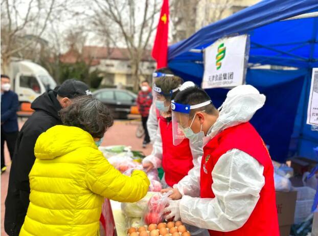 商貿(mào)公司嚴(yán)格執(zhí)行生產(chǎn)、物流、商品全鏈條的防疫消殺流程,保證人、車、物的防疫安全。特殊時(shí)期,居民為減少外出次數(shù),一次性采購量較大,為此,公司加大產(chǎn)品供應(yīng)力度,凌晨5點(diǎn)滿載蔬菜的貨車就陸續(xù)抵達(dá)南開區(qū)分倉,7點(diǎn)公司員工到崗對(duì)蔬菜進(jìn)行分揀、打包、稱重,9點(diǎn)新鮮、充足的蔬菜準(zhǔn)時(shí)到達(dá)各保供點(diǎn)位?;A(chǔ)民生食品一應(yīng)俱全,保證各點(diǎn)位供應(yīng)不脫銷、不斷貨,便民、貼心的服務(wù)得到了周圍居民的一致好評(píng)。“食品集團(tuán)的保供點(diǎn)位解決了我們?nèi)济贾保覀冞@小區(qū)老年人多,給我們帶來了便捷,小伙子們不怕麻煩,耐心為我們服務(wù),讓我們心里很踏實(shí)。”居民李大爺拎著剛買完的新鮮蔬菜安心的說道。