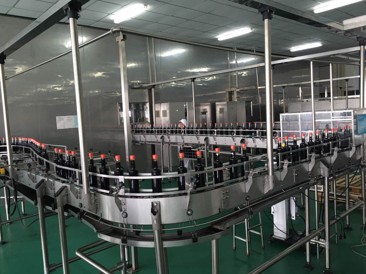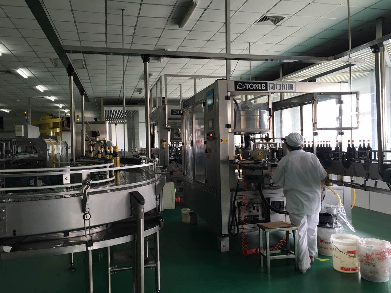 “下面大家參觀的是利民的五車間,主要生產(chǎn)及灌裝醬油、黃豆醬,我們可以清楚的看到每一個(gè)生產(chǎn)環(huán)節(jié),解開醬油釀造的神秘面紗”。